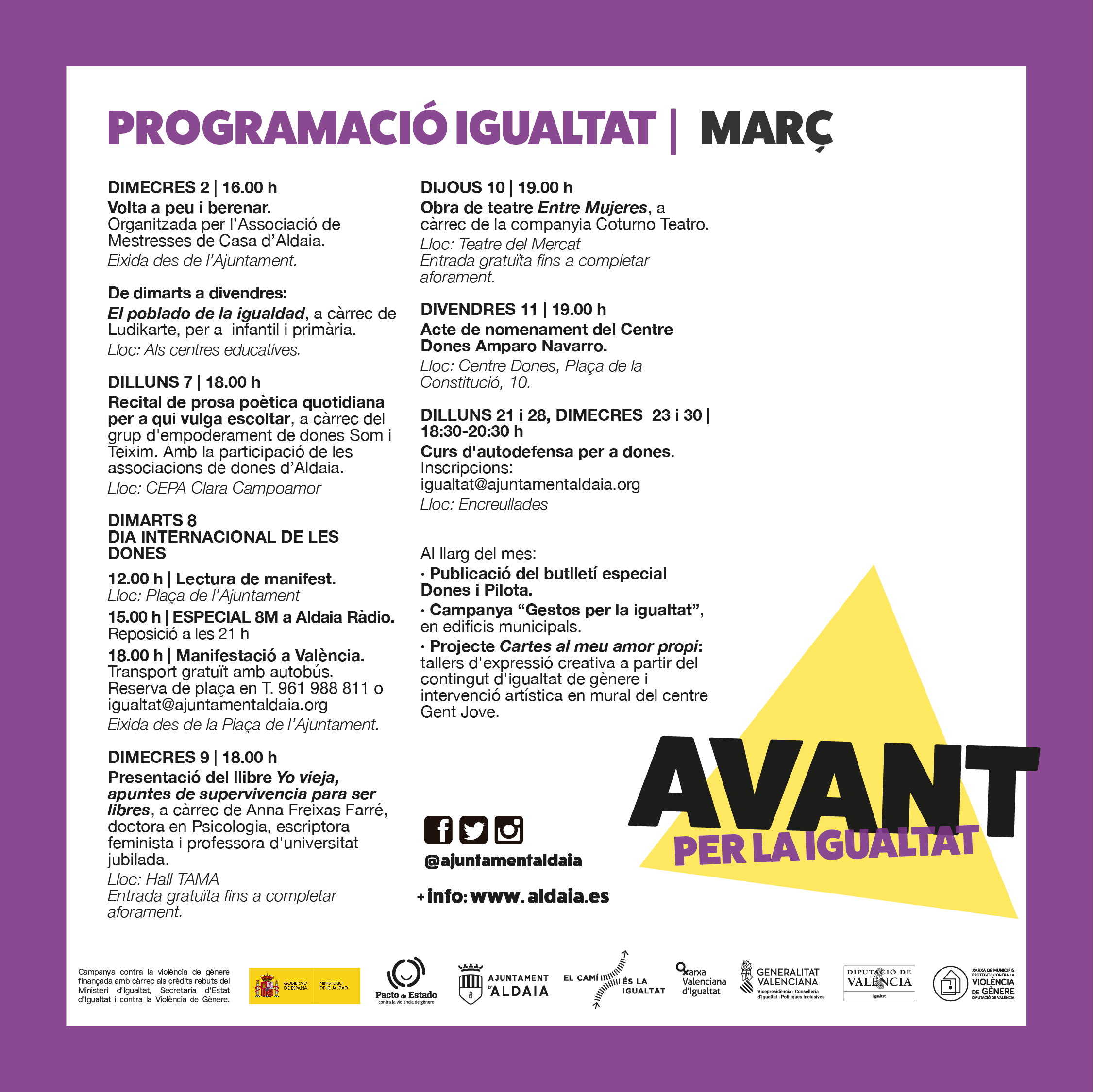 Con el objetivo de que la igualdad en el deporte sea una realidad, continuamos con el trabajo de apoyo, promoción y visibilización de las mujeres y niñas en el deporte desde nuestras diferentes concejalías. El año pasado dedicamos al deporte todas las actividades en torno al 8 de marzo, Día Internacional de las Mujeres, entre las cuales se encontraba el boletín "El deporte femenino en Aldaia". Siguiendo esa línea, este año presentamos "Mujeres y pilota valenciana", elaborado a partir de la I Jornada Mujeres y pilota" celebrada en el mes de febrero.