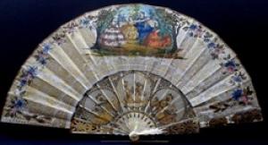 Varillatge. El país i el varillatge són de períodes diferents. El varillatge és d'origen francés, realitzar amb nacre, amb incrustacions de làmina de plata i daurada. Figuren tres medallons on es representen escenes romàntiques amb persones tocant el llaüt. Són personatges de diferents cultures, d'una banda i l'altra de l'Atlàntic, donant un toc multicultural a la peça. Les varetes dels extrems són simètriques, cosa que constitueix també altra peculiaritat de la peça.