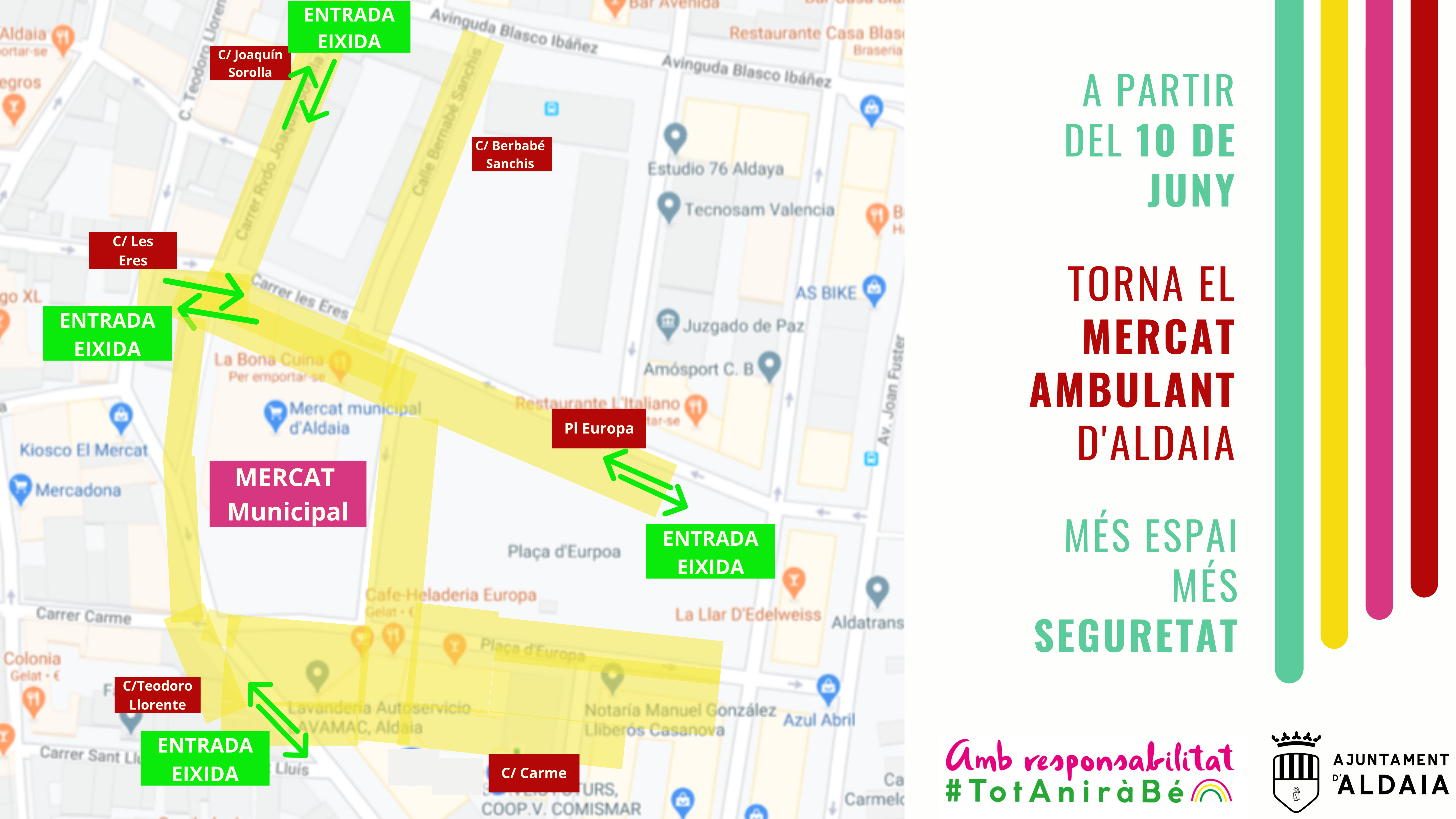 Por otro lado, el mercadillo de Aldaia quedará dotado de puntos de información con dispensadores de gel hidroalcohólico y guantes para cubrir necesidades. Y se hace obligatorio el uso de mascarilla y la distancia de seguridad entre los usuarios. El aforo queda limitado un máximo de 600 personas, que supone el 30% de su capacidad.