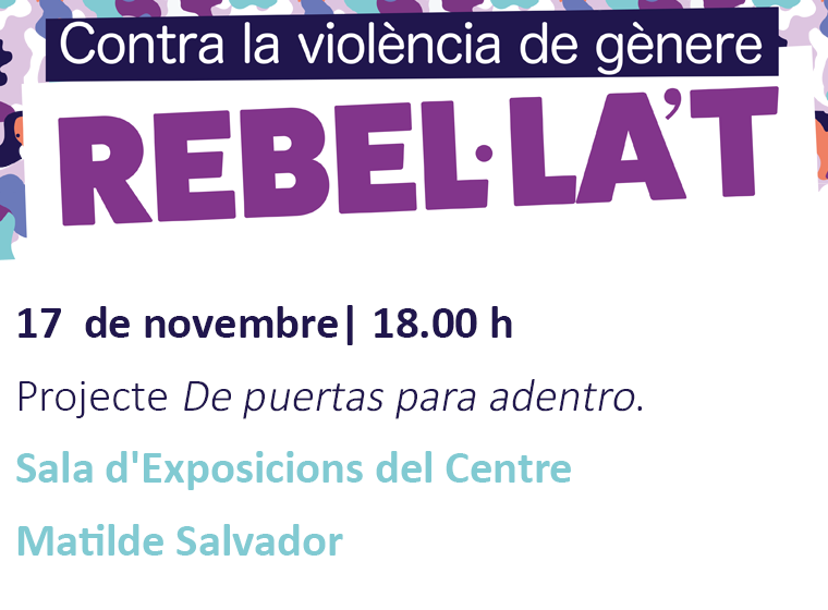 Projecte 'De puertas para adentro', a càrrec de Marta Enguix, d'Educar Educant-nos i Josevi Pepiol, de Projecte Caravana. Dimecres 17 de novembre a la Sala d'Exposicions del Centre Matilde Salvador.