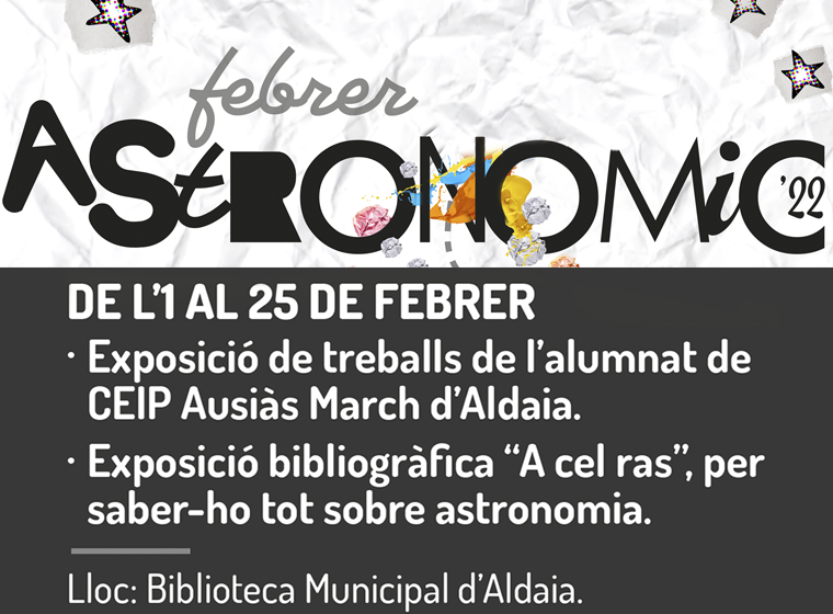 • De l'1 al 25 de febrer podràs visitar l'exposició de treballs de l'alumnat de CEIP Ausiàs March d'Aldaia i l'exposició 'A cel ras' a la Biblioteca Municipal.