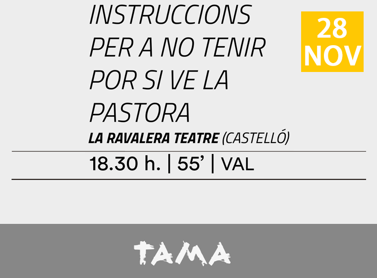- La cia La Ravalera Teatre (Castelló) presenta en el TAMA este espectáculo que habla sobre la gente criada en los Puertos que, de pequeños, cuando querían acabarse la cena, los mayores les decían “mira que si no haces caso, vendrá La Pastora...”.