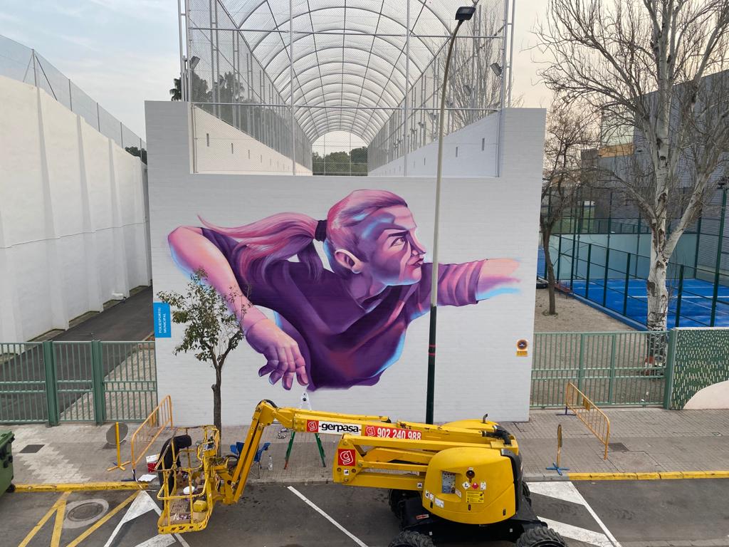 Aldaia da vida a la figura femenina en la pilota valenciana con un mural artístico de grandes dimensiones, situado a la pared exterior del trinquete del polideportivo de Aldaia. Los artistas encargados, Josep Roca y Plati, han trabajado durante días en una acción titulada ‘Més que pilotes’.