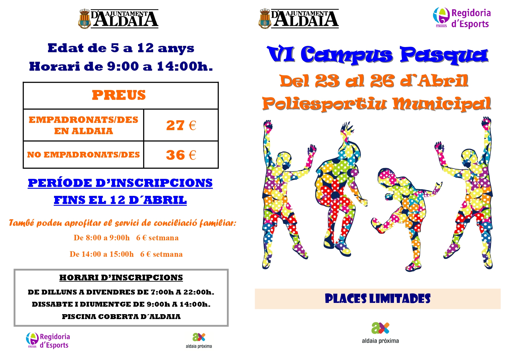 S'obri el termini d'inscripcions per apuntar els xiquets i xiquetes al VI Campus Pasqua d'Aldaia que se celebra del 23 al 26 d'abril.