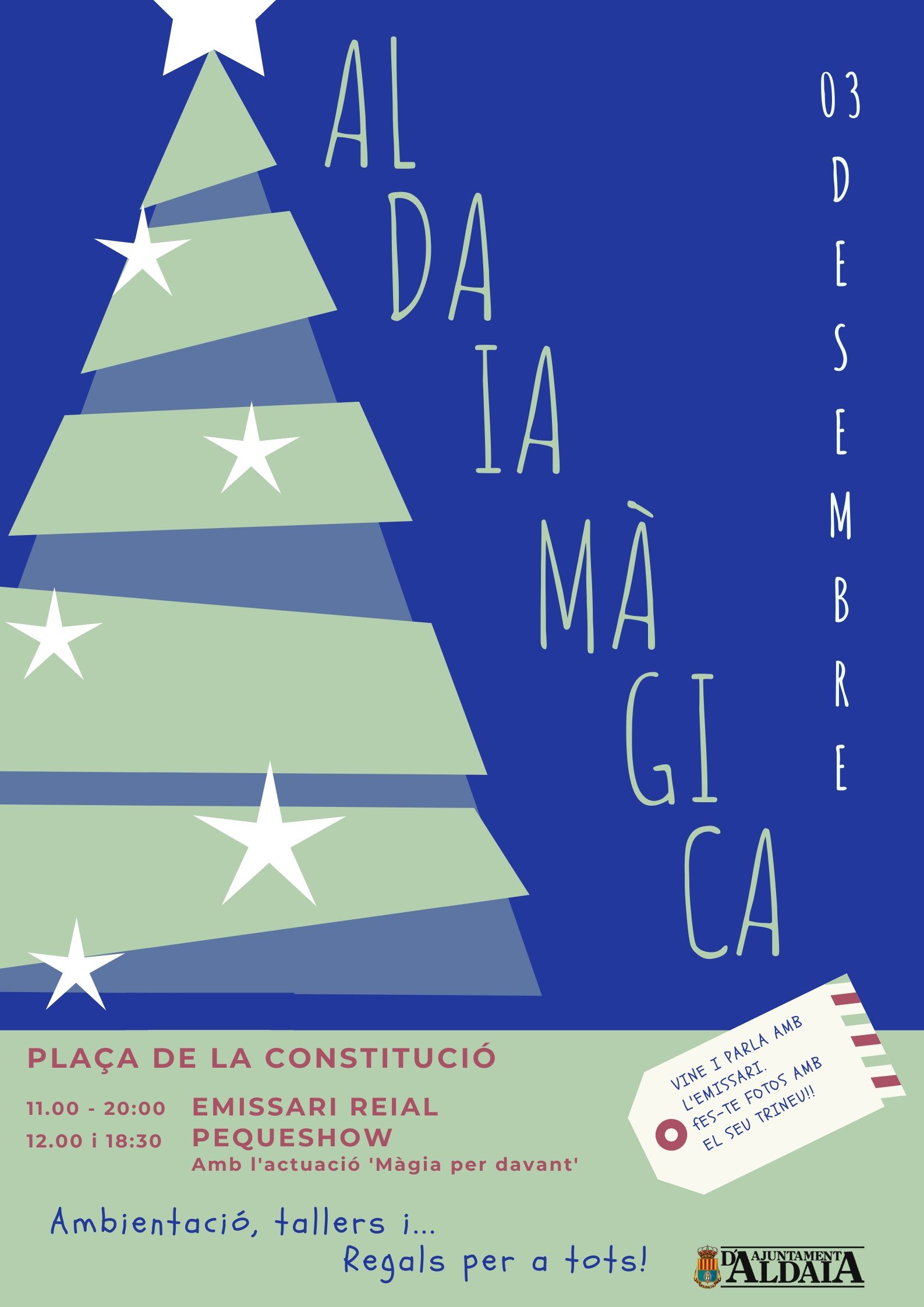 Con el encendido de la iluminación de Navidad en la plaza de la Constitución, Aldaia està preparada para acoger innumerables actividades. La programación está pensada para toda la familia, niños, jóvenes y mayores podrán disfrutar de una Navidad, juntos, en la calle. El Centro Matilde Salvador, organiza jornadas de puertas abiertas los días 11 y 12 de diciembre. Todos los talleres y actividades de su programación estable estarán al alcance de todos, cuando el centro se encuentra celebrando su X cumpleaños. El 15 de diciembre tendrá lugar la gran Feria de Comercio: ‘Un Nadal Màgic’, de ACODA. La Asociación de comercios sorteará un viaje a Disneyland Paris, entre los consumidores locales. La jornada, programada de 10:30 a 21:00 horas estará dedicada al ocio en familia: Xocolatà, talleres infantiles, Papá Noel y su iglú y las mejores ofertas de nuestros comercios. Uno de los platos fuertes tendrá lugar durante todo el viernes, 3 de enero, con la plaza convertida en ‘Aldaia Mágica’. El emisario real, dentro de su bola de cristal, recibirá todos los niños y niñas con espectáculos, talleres, ambientación y regalos para los participantes. La Biblioteca municipal también se suma a las celebraciones con horarios más anchos, la visita de escritores y periodistas, y una jornada de ‘Noche a la Biblioteca’. Además, ‘Un Nadal de Conte’ es un taller con canciones, juegos, danzas, y cuentacuentos infantil a disposición de todos y todas. Siguiendo con las opciones para las vacaciones de Navidad, se presenta el VX ciclo Bonic de teatro para niñas y niños, los días 26, 27 y 28 de diciembre en el TAMA y el IX Festival de canciones de Navidad, juegos y talleres infantiles. Y así llegará la gran Cabalgata de Reyes Magos, convirtiendo la loclaidad en una gran fiesta el sábado 5 de enero a las 18:30 horas. Todo con la feria de atracciones ya tradicionalmente ubicada cada día en el cinturón verde de Aldaia. Deporte y solidaridad se unirán, un año más, el día 28 con la VI carrera solidaria de San Silvestre, y el domingo el campeonato autonómico de ciclo-cross. La música, protagonista Aldaia disfrutará de los conciertos de la Banda de Mayores de l'Horta Sud, el Grupo de baile Ronda d’Aldaia, la Banda de Cornetas y Tambores del Santísimo Cristo de los Necesitados, la Coral Harmonia, l’Orfeó de Aldaia, la Ronda de Aldaia, la Unión Musical y la Banda Sinfónica.