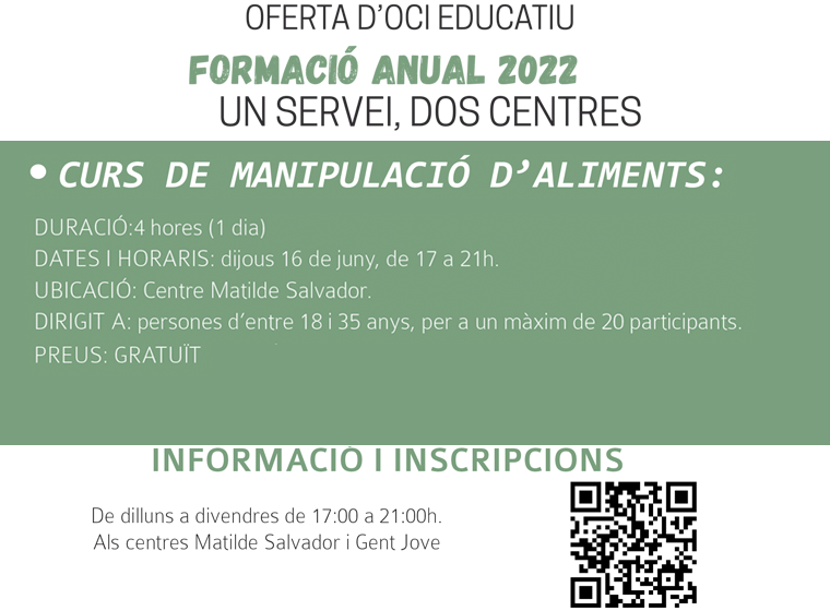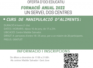 Obté el certificat de manipulador d'aliments necessari per a treballar en qualsevol ocupació relacionada amb la manipulació d'aliments (restauració, menjadorss escolars,...).