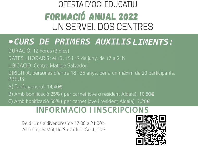 - Preu: 14,40€, 10,80€ amb Carnet Jove o empadronats a Aldaia, 7, 20€ amb Carnet Jove i empadronats a Aldaia.