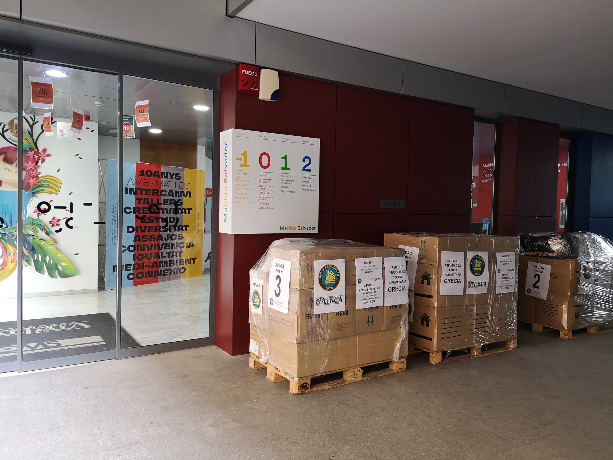 En el Centro Sociocultural Matilde Salvador de Aldaia, se recogió una gran cantidad de productos y enviaron 3 palés con productos de higiene, ropa de abrigo, y alimentos aportados por vecinas y vecinos del municipio, y también se recogieron donaciones de personas y entidades otros lugares. La Fundación *SEUR lo transportó al puerto de València desde donde salió la Naviera rumbo en Atenas donde la organización hace su distribución con furgoneta propia.