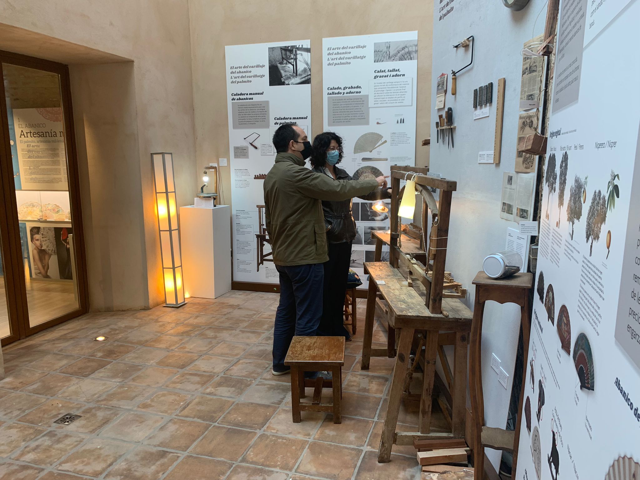 “L’art del varillatge del palmito/El arte del varillaje en el abanico” es un nuevo espacio museográfico de la colección permanente del MUPA, situado en la planta baja de la Casa de la Llotgeta de Aldaia. En este espacio se reproduce, entre siete paneles explicativos y varias caladoras manuales, un taller antiguo de calador de varillas de palmitos.