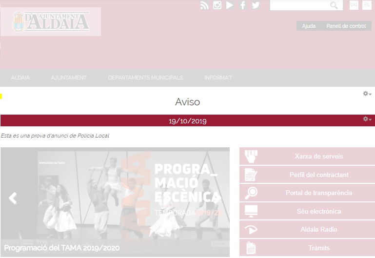 Un Aviso es una comunicación directa con el ciudadano para prevenirle de un hecho importante, sobre todo si le afecta en su convivencia o movilidad con el municipio. Por ejemplo, para advertir de cortes de calles, de agua, cambios de señalización, anuncio cortes de servicio, etc.
