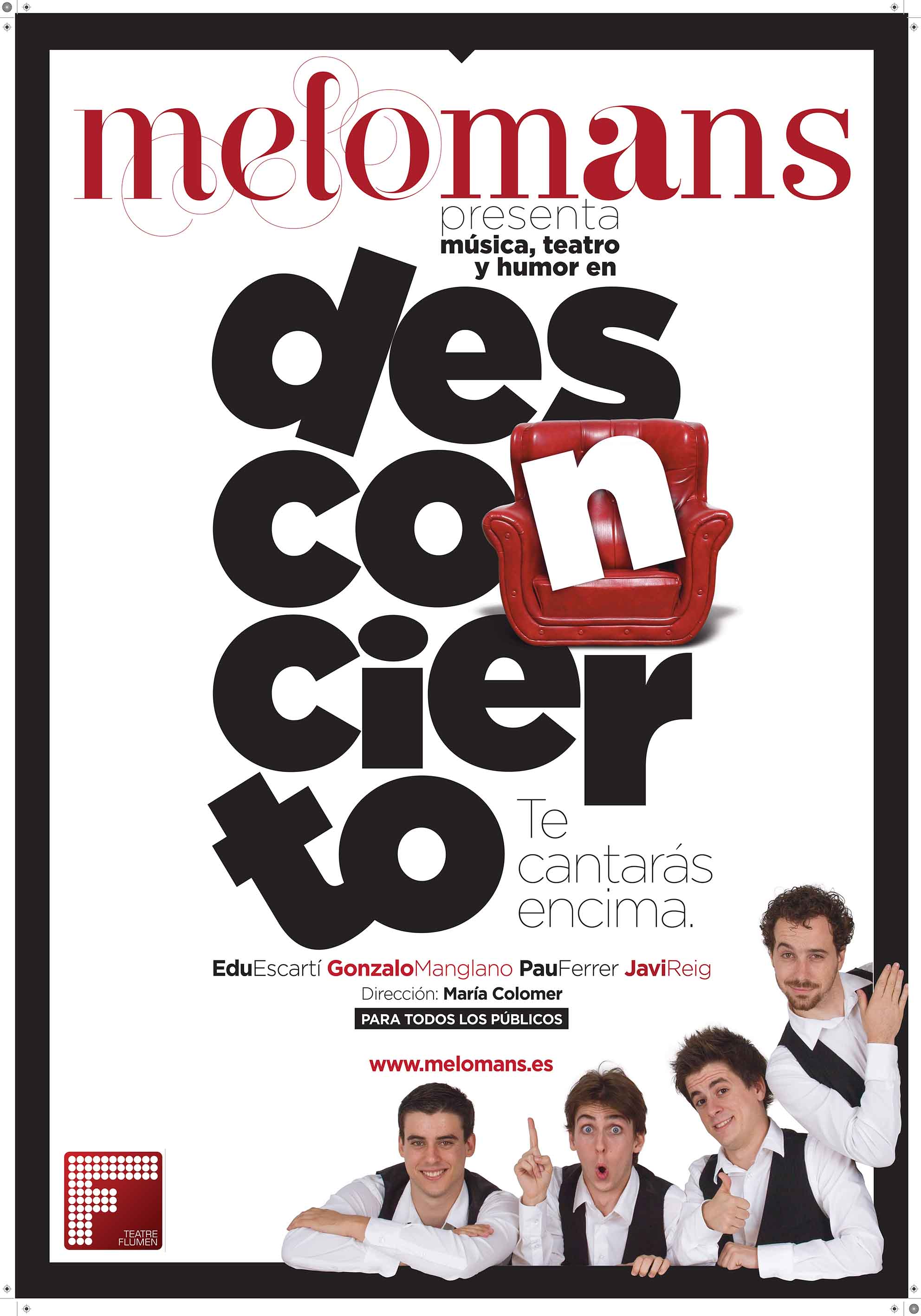 Hasta aquí todo parece indicar que el concierto va a ir sobre ruedas… Pero no hace falta esperar ni a la primera canción para que empiecen los contratiempos y los imprevistos. Lo que iba a ser un concierto se va a convertir en un Desconcierto, donde siempre el humor y el buen gusto musical van a ir de la mano acompañando al variado repertorio del espectáculo. Cuatro voces que prescinden de cualquier tipo de instrumentación y que ellas solas asumen toda la responsabilidad musical de la actuación, canciones conocidas, participación del público, bromas, sketches y delirios varios se alían para deleitar al público con noventa divertidos y entretenidos minutos de espectáculo, aptos para todas las edades.