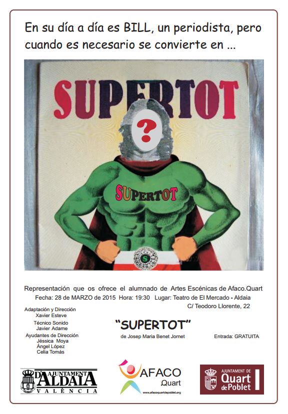 El 28 de marzo a las 19.30 horas el teatre del Mercat acogerá la representación de ¡l alumnado de Artes Escénicas de Afaco. Quart