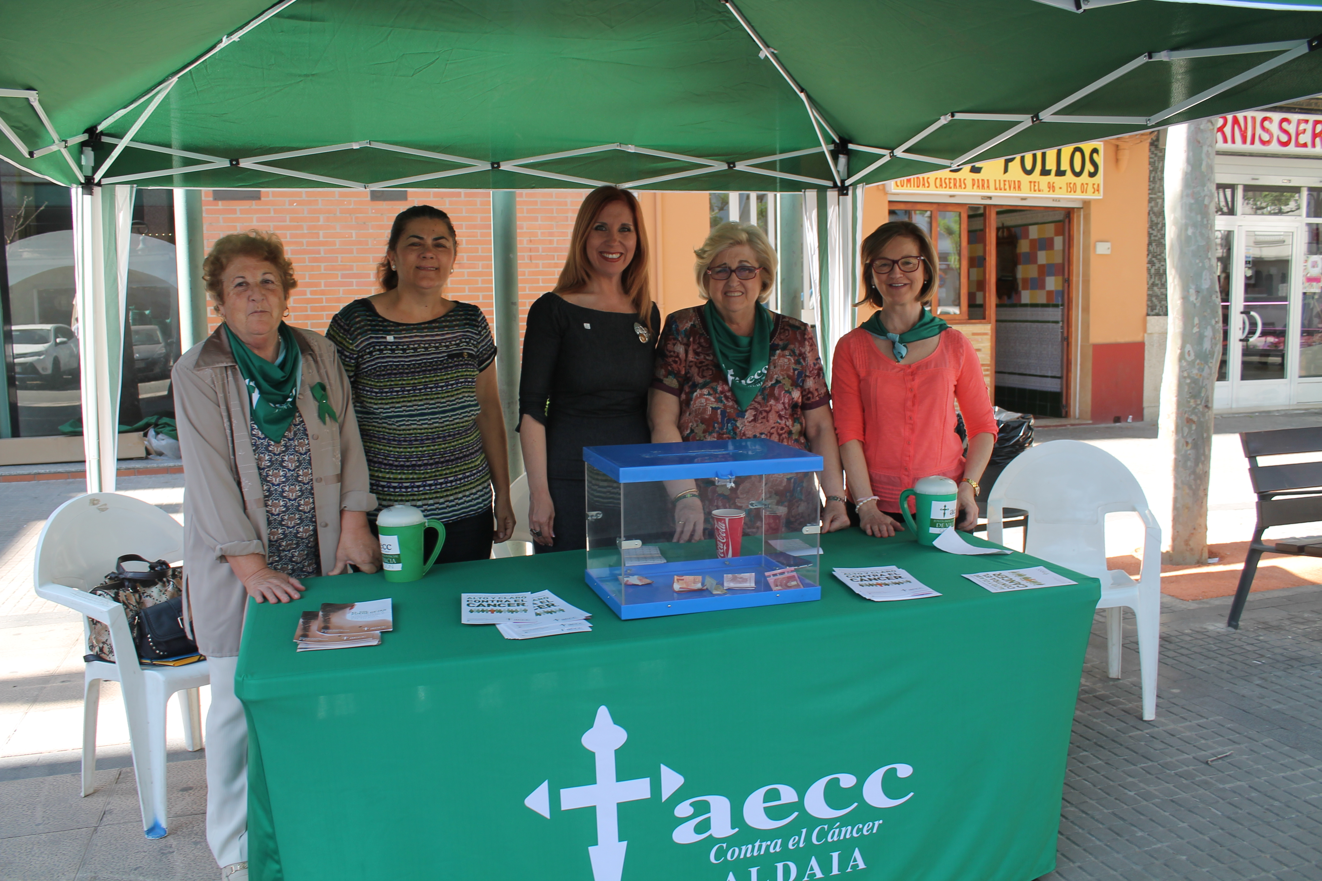 La Delegación de Aldaia de la Asociación Española Contra el Cáncer (AECC), está realizando a lo largo de la mañana una cuestación con la colocación de seis carpas verdes en diferentes puntos del municipio aldaiero.