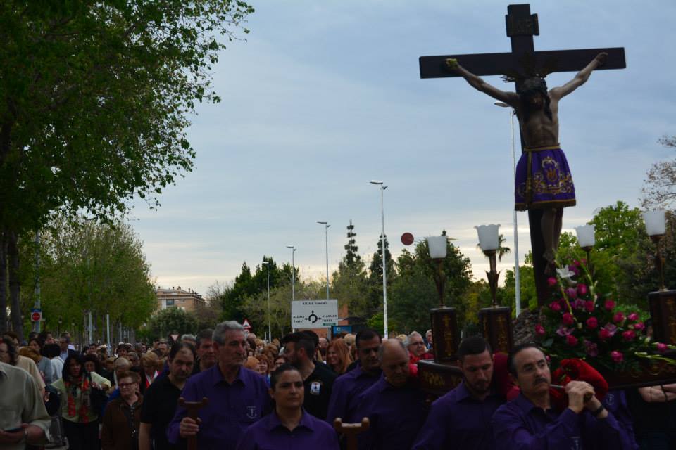 Los portadores del Cristo, que estaban acompañados por el sacerdote de la Anunciación, Joan Carles Alemany, llevaron el anda hasta el límite donde fue recibido por la presidenta de la Mancomunidad del Barrio del Cristo y alcaldesa de Aldaia, Carmen Jávega; la concejal delegada, Caridad Collado; la cofradía de la iglesia del Stmo. Cristo y por el sacerdote titular de esta parroquia, Fernando Alventosa