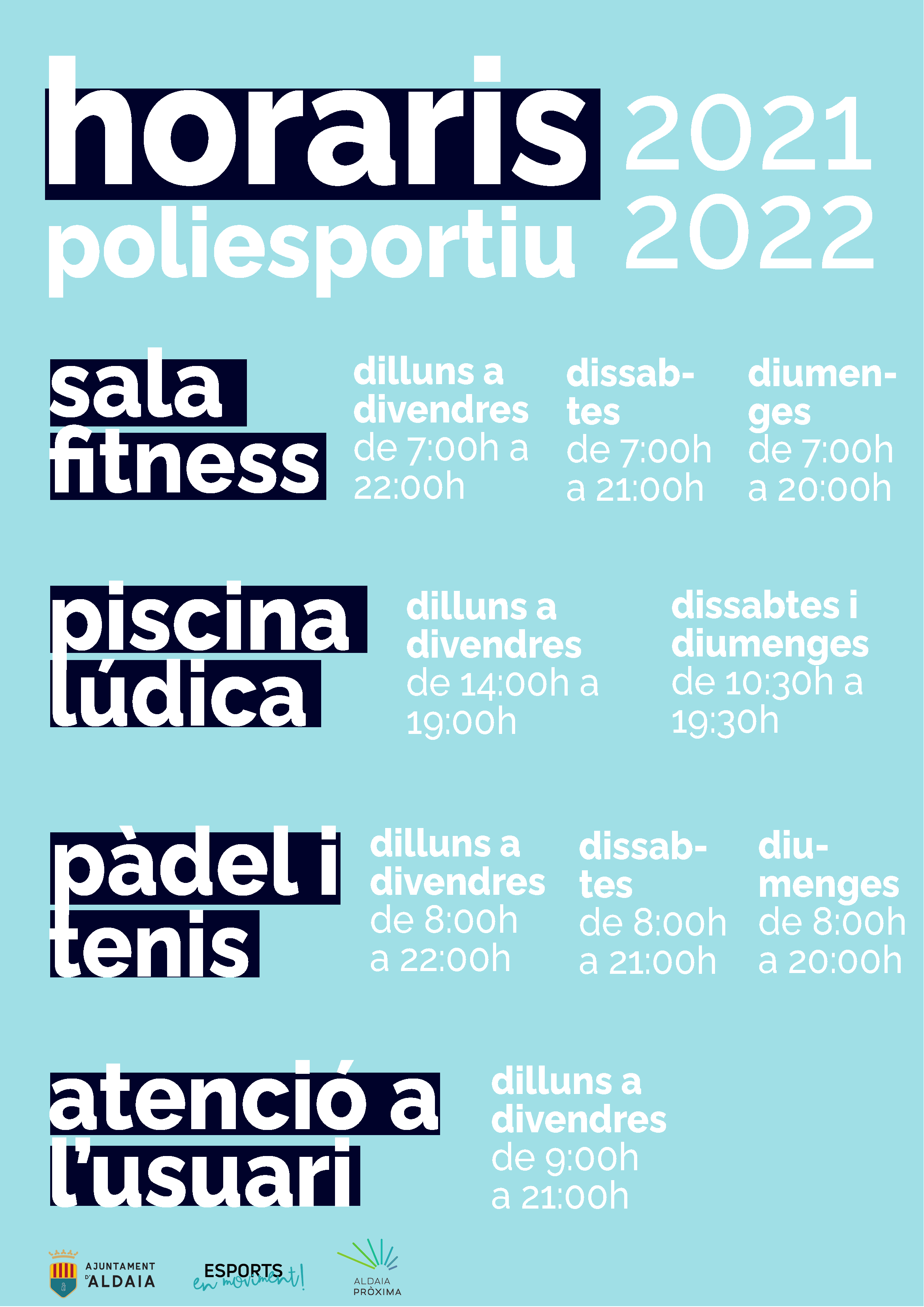 En esta sección encontrarás los horarios de apertura y cierre de las distintas instalaciones del polideportivo.