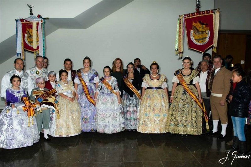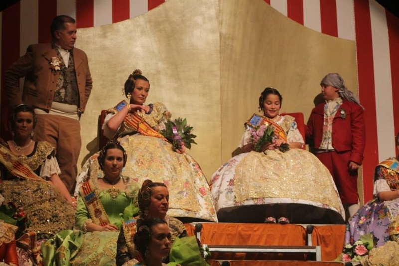 Seguidamente subieron al escenario las falleras salientes, Mari Carmen Hueso, infantil y Marta García, la mayor, acompañadas de los presidentes, Pablo Ruiz y Rafael Morilla, infantil y mayor respectivamente, a las que les sería entregado un cuadro conmemorativo por su representación durante el pasado ejercicio.