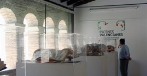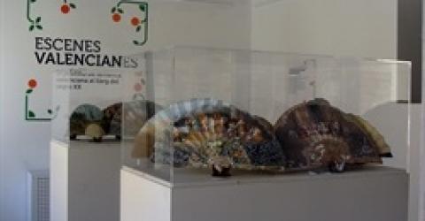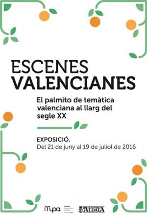 Els palmitos són aire pintat, auntèntiques obres d'art on els pintors creen belles imatges al·legòriques. "Escenes valencianes" presenta una mostra de 40 ventalls amb ambients costumistes típics de l'Horta i la ciutat de València. Entre altres trobem estampes campestres amb llauradors i llauradores vestits amb la indumentària tradicional, ambients festívols de danses populars sinuoses envoltades d'una atmosfera romàntica mediterrània. O entorns rurals amb icones de la cultura valenciana tan conegudes com la Barraca, la taronja o la internacional paella. Igualment hi ha palmitos que reprodueixen paisatges culturals que fan referència al regadiu d'horta i l'Albufera amb les seues barques i barraques de pescadors, així com llegendes populars o personatges històrics que formen part de la mitologia popular, com el Rei Jaume I, o imtages religioses com el Crist dels Necessitats d'Aldaia, la Mare de Déu dels Desamparats o la Mare de Déu del Do d'Alfafar. I també bells quadres del patrimoni arquitectònic de València més embemàtic com la Catedral i el seu Miquelet, les Torres de Serrans i de Quart o el Tribunal de les Aigües en palmitos cedits per Antonio Soldevila i Guillermo Carbonell.