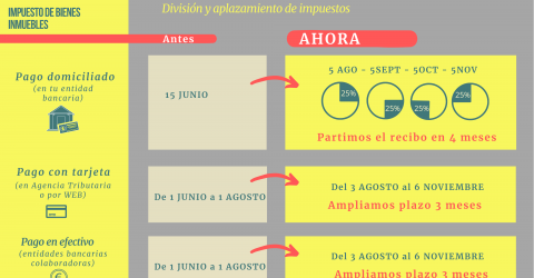 Per exemple -expliquen des de l'àrea econòmica municipal- si abans un ciutadà pagava un rebut d'IBI de 200 euros a data 15 de juny, mitjançant el nou calendari passarà a abonar 50 euros el 5 agost, 50 el 5 setembre, 50 el 5 octubre i altres 50 el 5 de novembre.” Per part seua, aquelles persones que preferien abonar l'IBI quan els arribava el rebut a casa, abonant-lo en el banc, amb targeta en l'Agència Tributària Municipal, o via web, veuran ampliat el termini màxim de pagament tres mesos, de l'1 d'agost anterior al 6 de novembre amb el nou calendari.