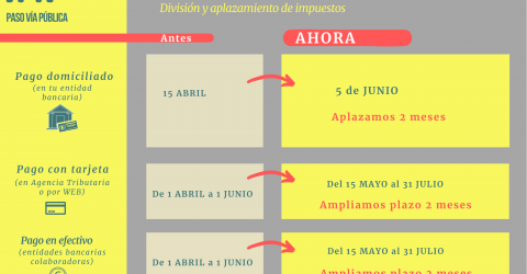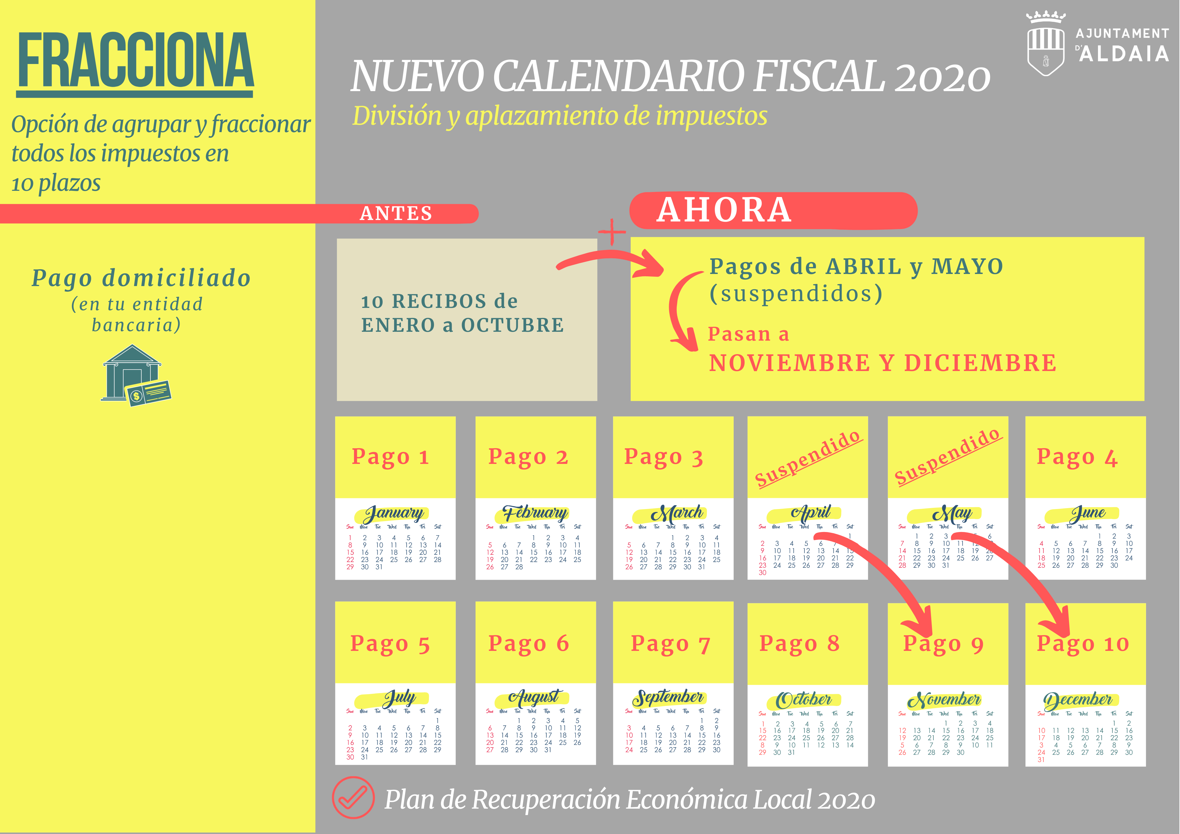 Per part seua, el sistema “Fracciona”, que agrupava tots els impostos municipals i dividia el seu pagament a parts iguals en deu mesos, de gener a octubre, passarà a fer-se efectiu fins a desembre, per a poder així fer front a les mensualitats d'abril i maig sense suposar una distorsió per als contribuents.