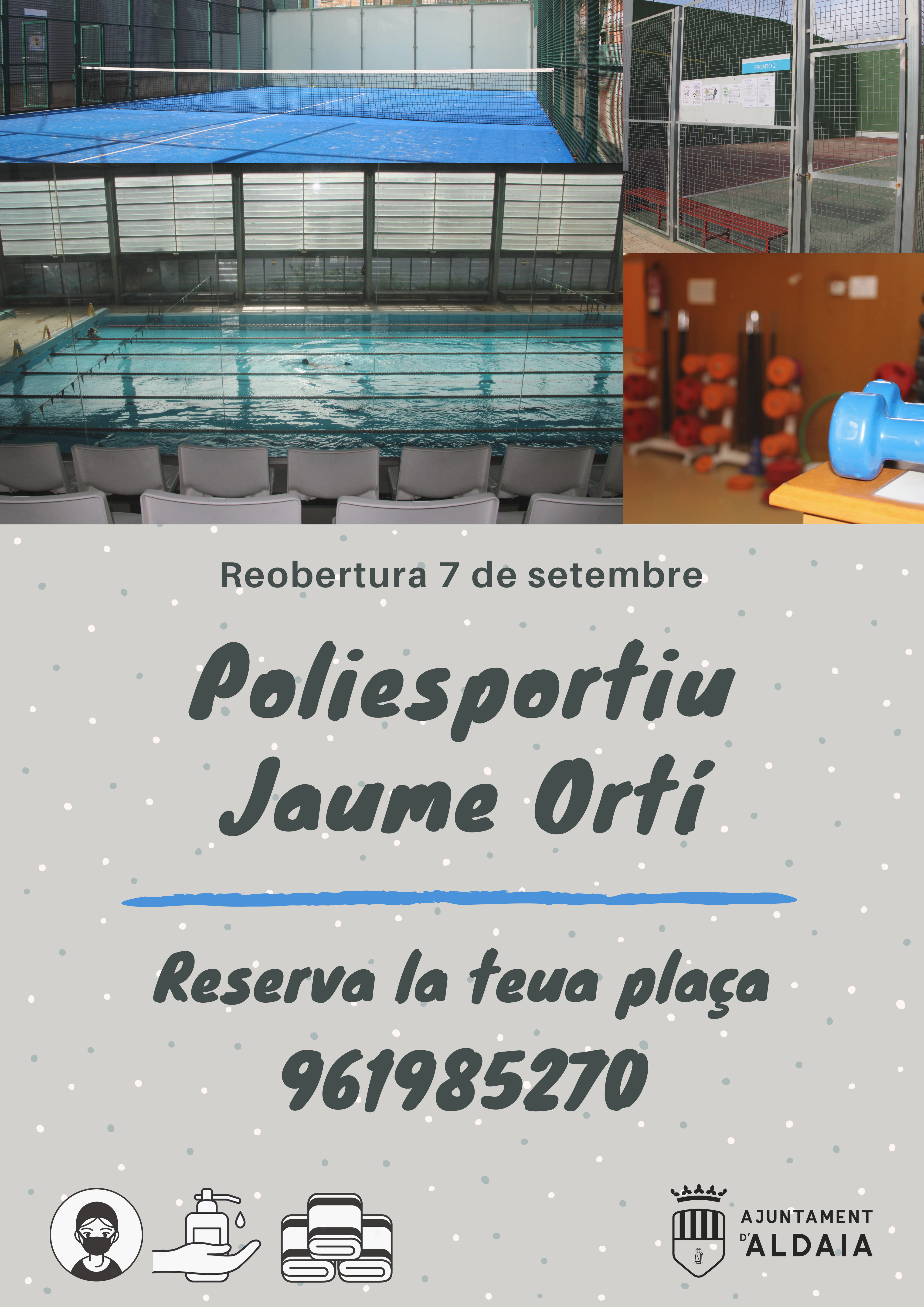 Amb el mes de setembre el poliesportiu Jaume Ortí d’Aldaia reobri les seues portes, amb totes les mesures de seguretat sanitàries previstes. Entre elles, de fet, es fa obligatori haver reservat plaça prèviament per a disfrutar de les instal·lacions municipals, evitant així aglomeracions i facilitant la desinfecció entre els torns previstos.