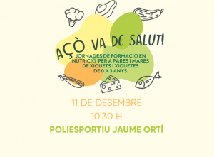 - Aprén a cuinar receptes nadalenques més saludables en família el pròxim 11 de desembre a una jornada gratuïta (Ioga en família, Taller d'alimentació saludable i Boot Camp). Inici previst a les 10.30 h al Poliesportiu Jaume Ortí. Inscripcions al seguent enllaç: https://bit.ly/3oVBl1c