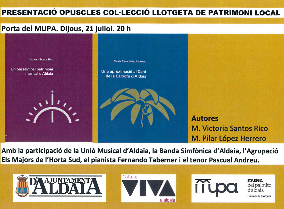 El pròxim dijous 21 de juliol, a les 20.00 h, el MUPA acollirà esta presentació dels nous opuscles de la Col·lecció Llotgeta de Patrimoni Local: