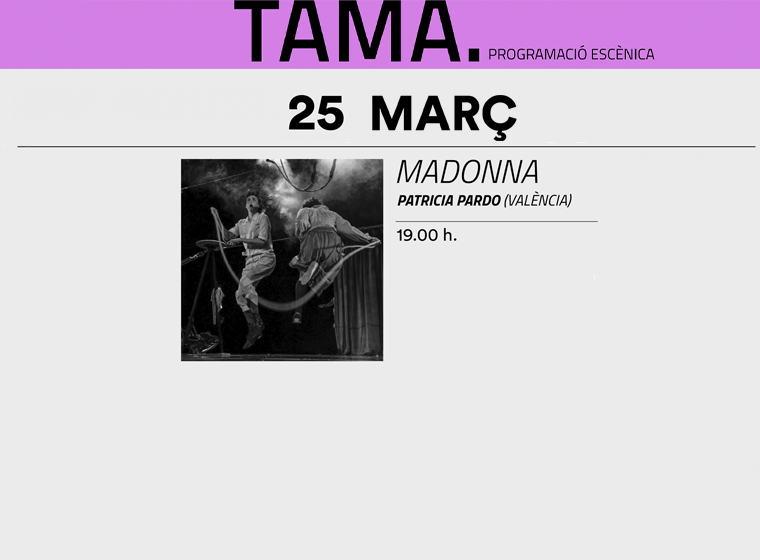 • Patricia Pardo torna a visitar el TAMA el pròxim 25 amb la darrera de les seues produccions, 'MADONNA'. Com és la relació d’una mare i d’una filla? I el triangle familiar iaia, mare i filla o l’ordre que estimeu oportú posar? Criança, veganisme, rutina diària, tensions intergeneracionals... Amb acrobàcies, clown, equilibris, humor, gest, dansa i “devoció” tindrem la resposta.