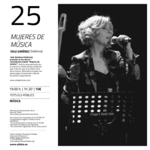 Sole Giménez (València), presenta el seu darrer i reivindicatiu treball "Mujeres de música". Amb la seua personal veu fa menció a moltes dones creadores que s'obriren pas en el difícil camí de la música. Reivindica el paper tan desconegut, fonamental i vital de les dones compositores.