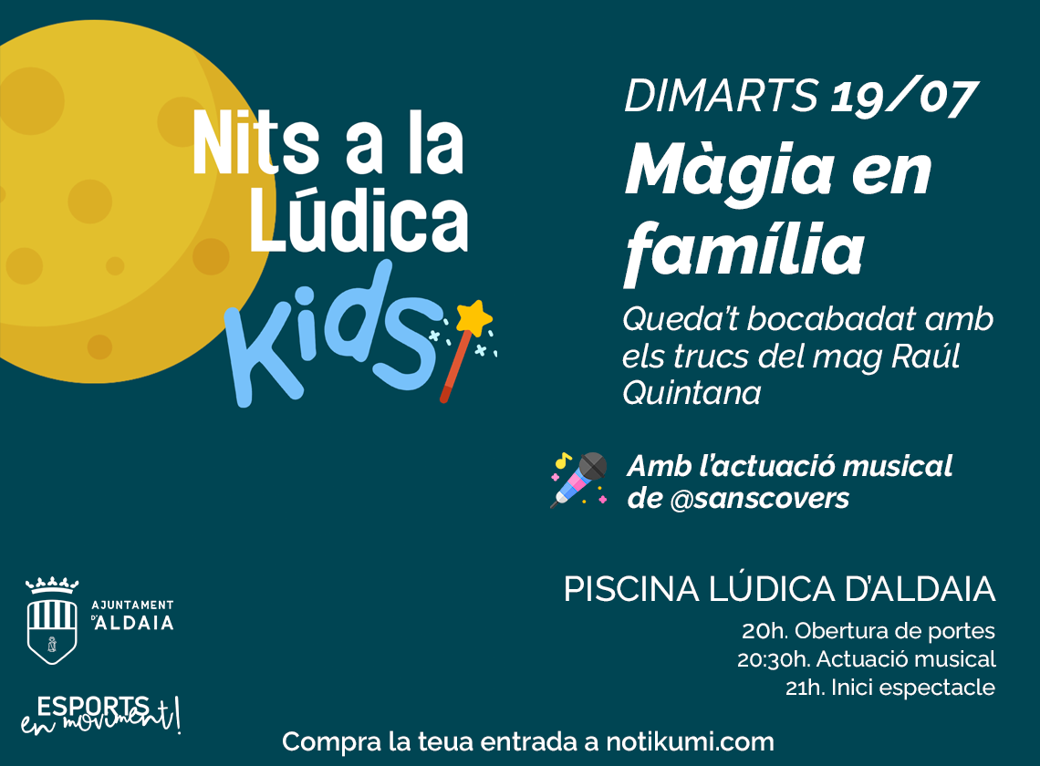 Compra les teues entrades a 3€ en taquilla abans de l’espectacle o en el següent enllaç: www.notikumi.com/en-piscina-ludica-daldaia