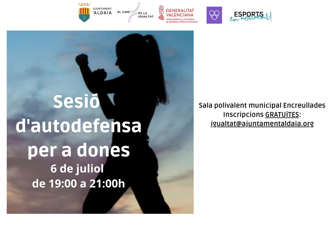 • Apunta't al taller gratuït organitzat per al pròxim mes de juliol en el següent correu: igualtat@ajuntamentaldaia.org  Dimecres 6 de juliol, de 19.00 h a 21.00 h, a la Sala Multiús del carrer d'Encreullades.