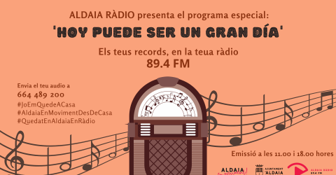 > 'Hoy puede ser un gran día': Programa especial de dedicatòries musicals per acompanyar especialment als més majors en el confinament. Envia el teu àudio amb la petició al 664.48.92.00.