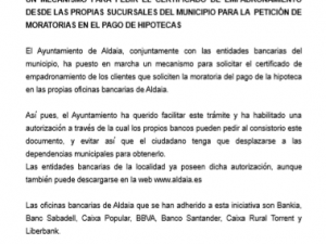 sobre Autorització per a demanar el certificat d'empadronament en Aldaia per a moratòria d'hipoteques